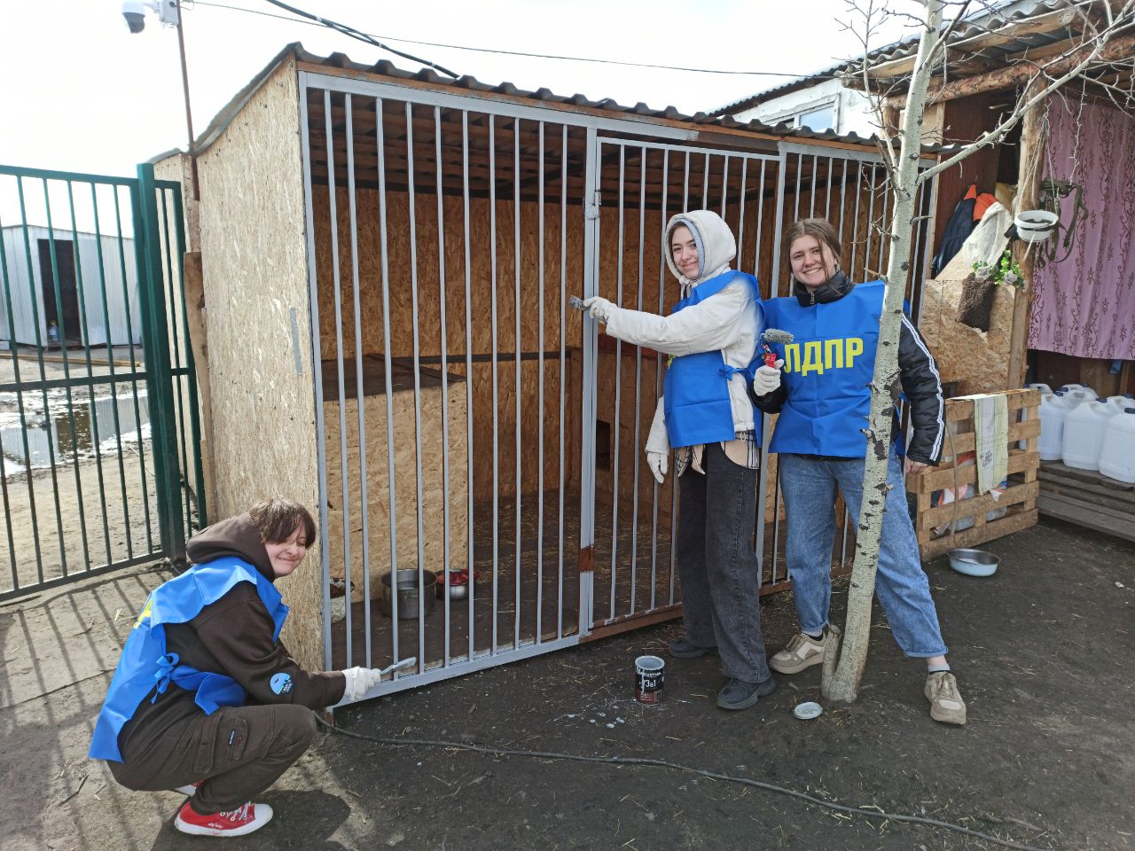 В этот раз приют посетили активисты молодёжного крыла ЛДПР. Активисты покрасили вольеры и подготовили площадку для установки нового.