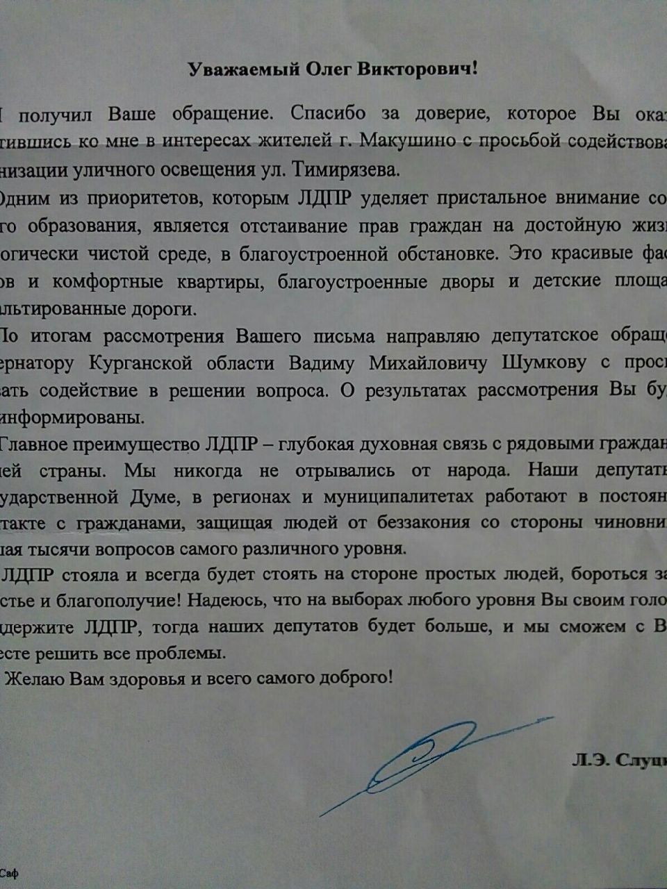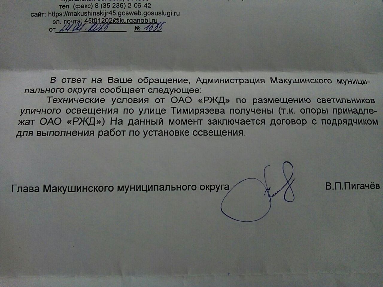 Жители Макушино, проживающие на улице Тимирязева, долгое время сталкивались с отсутствием уличного освещения. Особую тревогу вызывала безопасность детей, которые возвращались из школы в темноте. Обратившись в местное отделение ЛДПР, граждане получили оперативную поддержку. Партийцы направили официальные запросы, и уже в ближайшее время Глава Макушинского МО Владимир Пигачев сообщил о положительном результате: технические условия от ОАО РЖД для установки светильников получены. Сейчас ведется заключение договора с подрядной организацией. Макушинское отделение ЛДПР держит вопрос на контроле, чтобы работы были завершены в кратчайшие сроки.