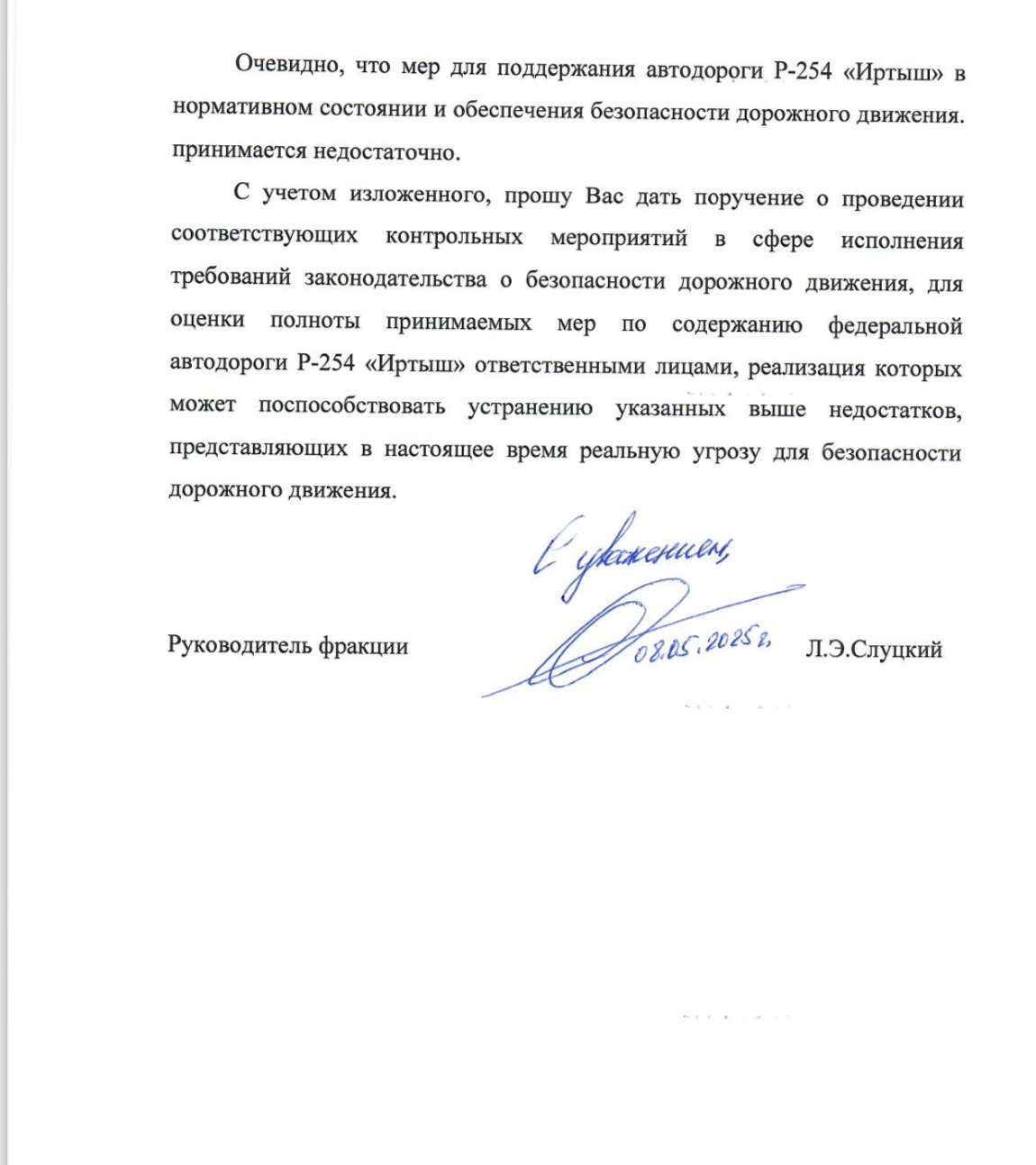 «Иртыш» — не просто дорога, а стратегическая артерия, от которой зависят жизни людей и экономика Зауралья. Пока подрядчики нарушают сроки, угроза растёт. ЛДПР продолжит добиваться решения проблемы: безопасность граждан не может быть отложена на потом.