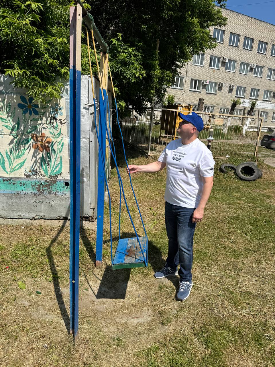 И.о. координатора Курганского городского отделения ЛДПР Павел Вагин лично осмотрел объект. Основные проблемы подтвердились - утрамбованный песок в песочницах, изношенные крепления качелей и поврежденные ограждения.