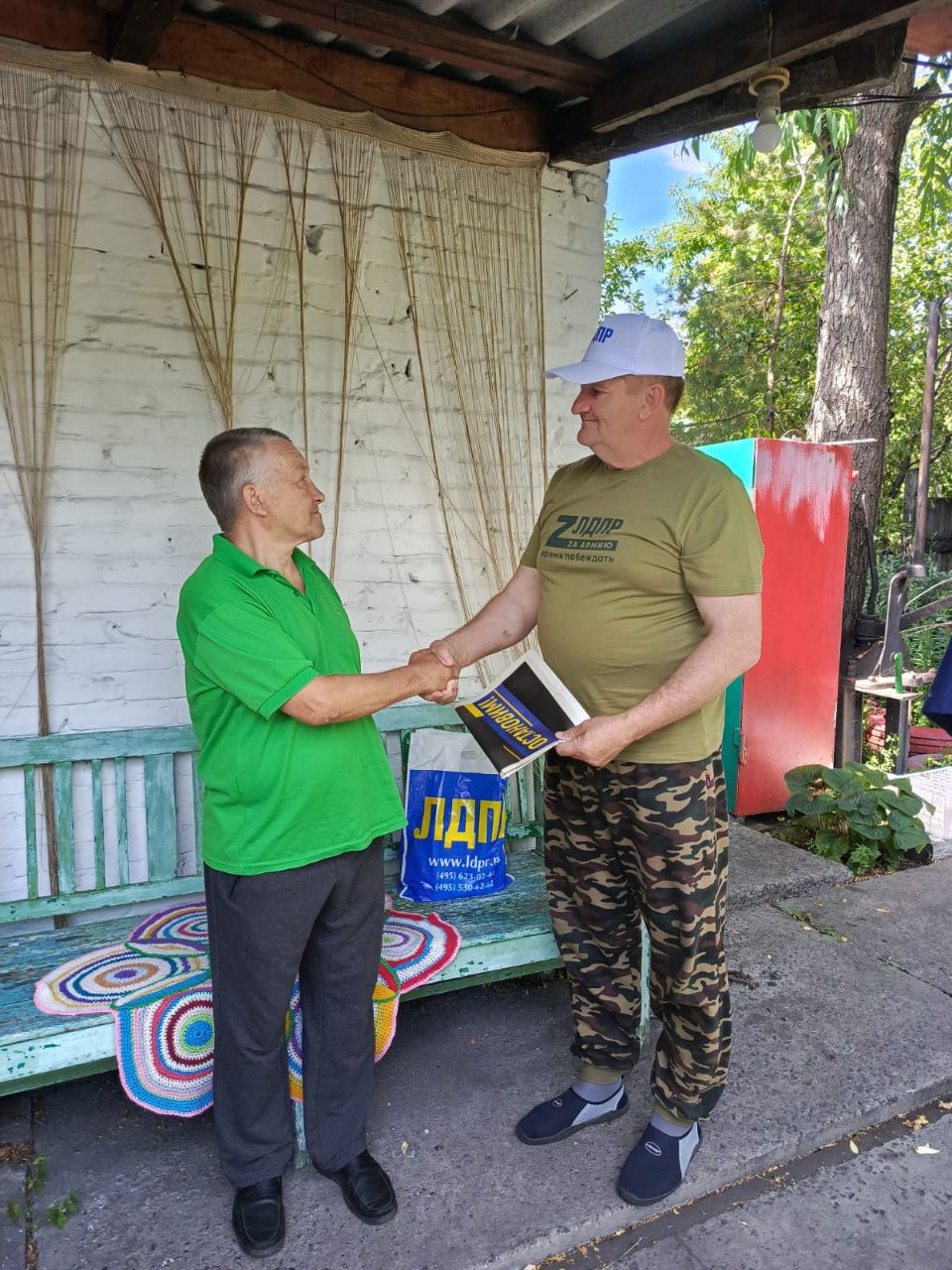 Координатор Макушинского местного отделения ЛДПР Олег Самсонов в День ветеранов боевых действий посетил ветерана Альберта Иванова в Макушино. Самсонов лично поздравил ветерана и вручил подарок с символикой партии, подчеркивая важность постоянного внимания к подвигу защитников России.