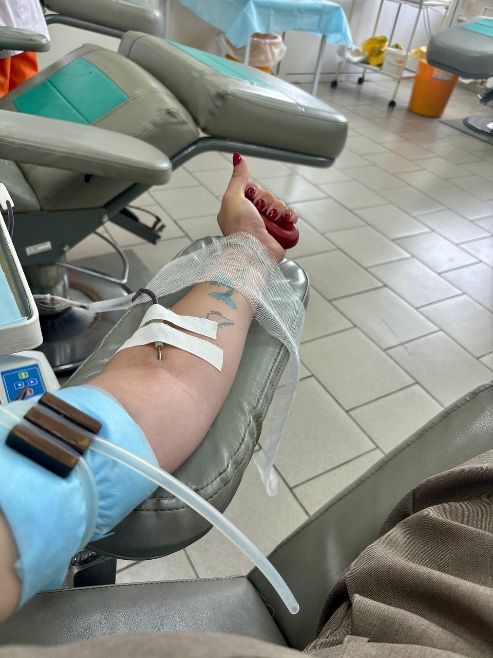 Сегодня она приняла участие в донации крови на Курганской областной станции переливания крови, продолжив свою многолетнюю традицию безвозмездной помощи нуждающимся в компонентах крови.